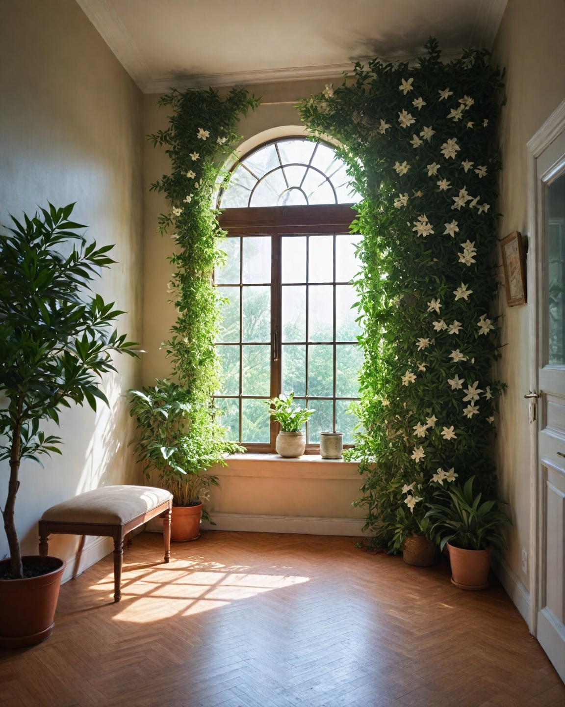 Jasmine not only climbs beautifully but also fills your home with a lovely fragrance.