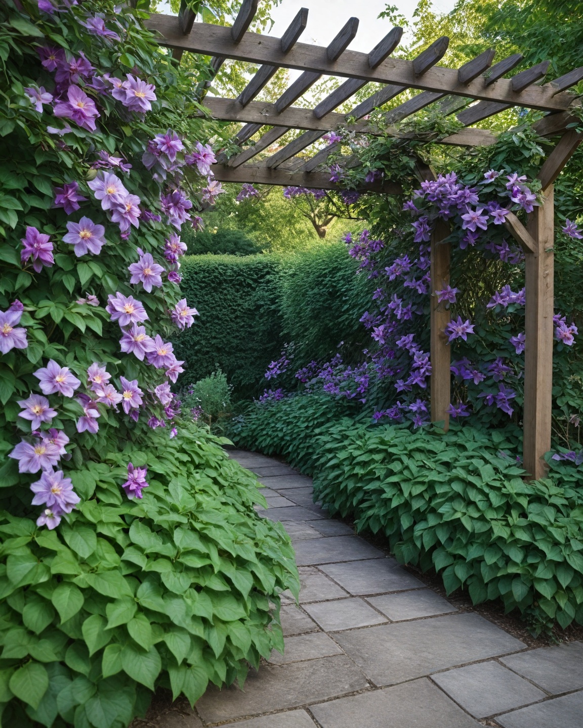 Clematis loves shady spots and offers a stunning display of flowers in various colors.