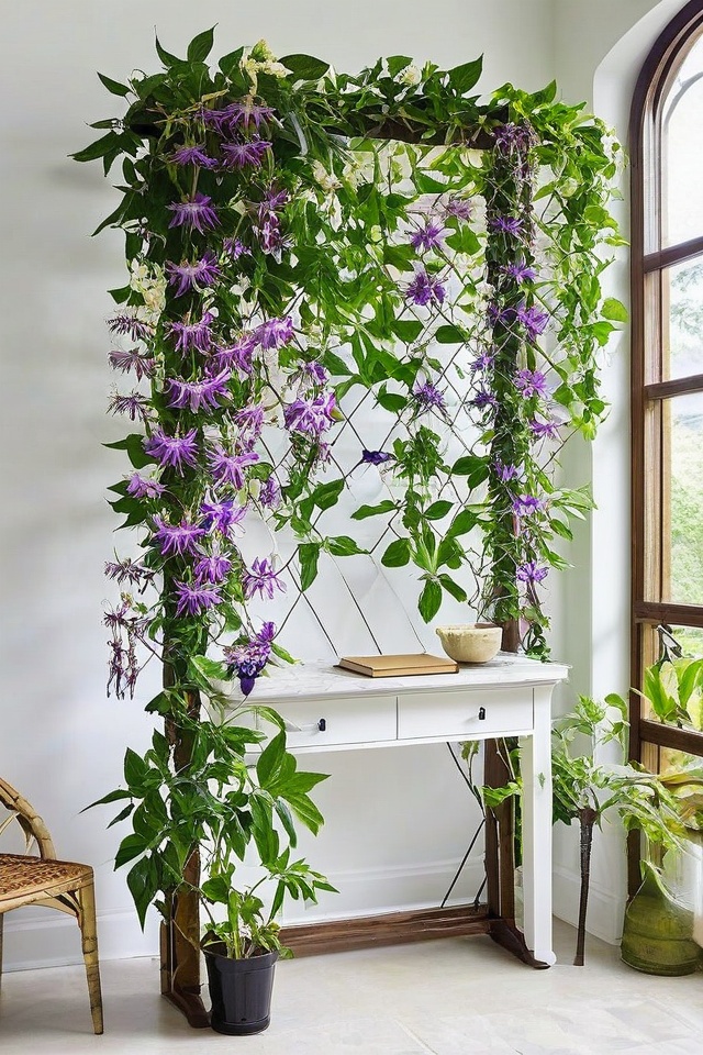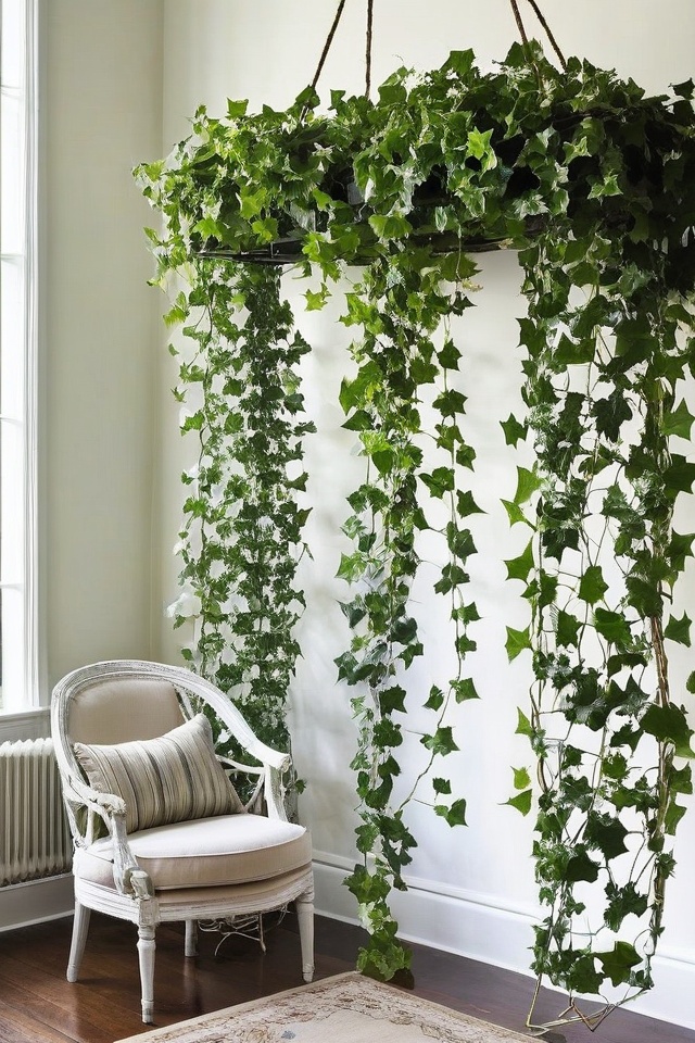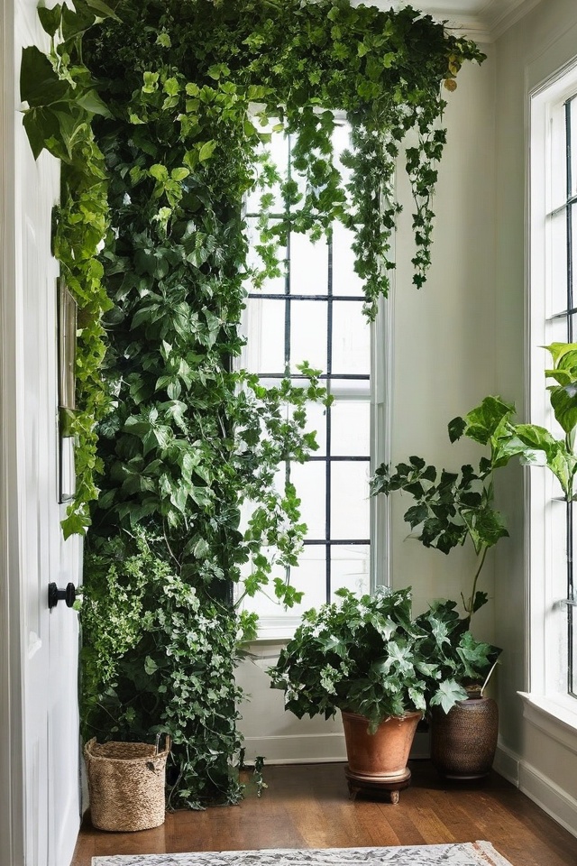 Hedera Helix or common ivy is perfect for indoor spaces, easily climbing trellises with minimal care.