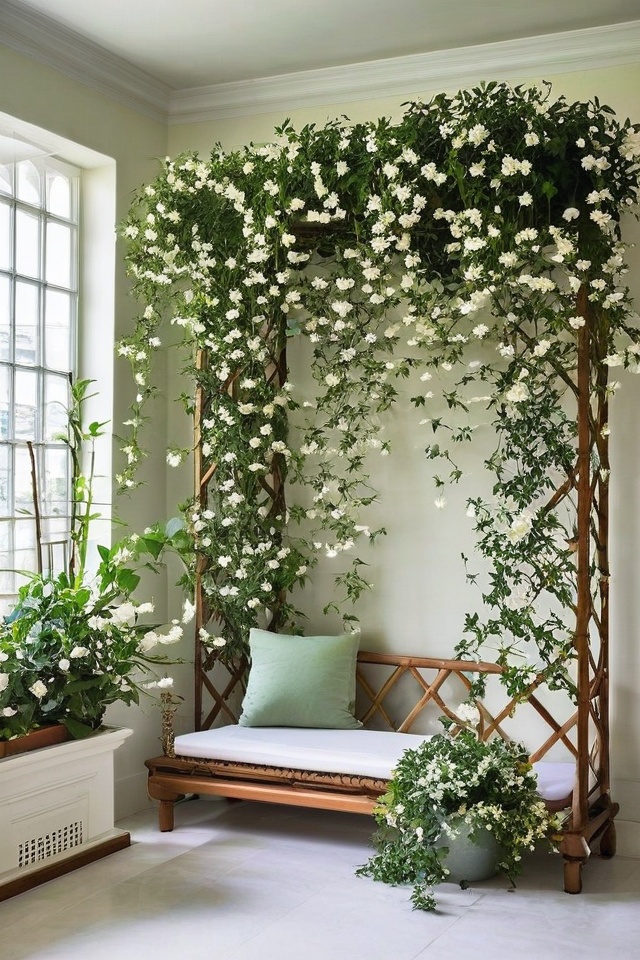Jasmine can bring a delightful scent along with its climbing beauty into your indoors.