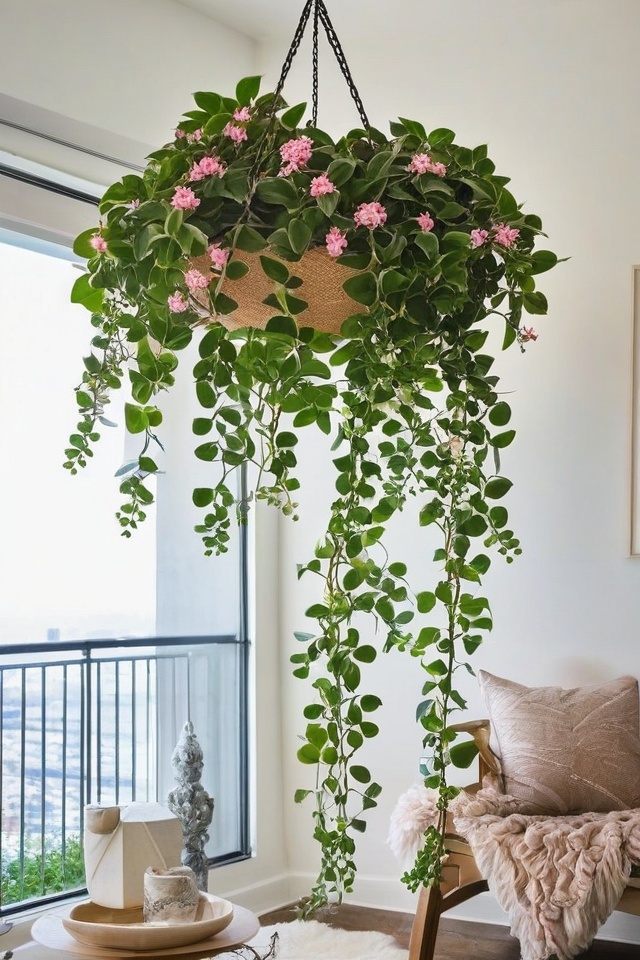 Hoya plants, also known as wax plants, have thick, glossy leaves and can produce beautiful star-shaped flowers.