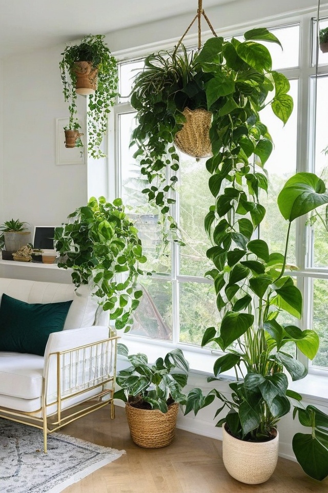 Pothos are hardy climbing plants that can grow almost anywhere indoors.