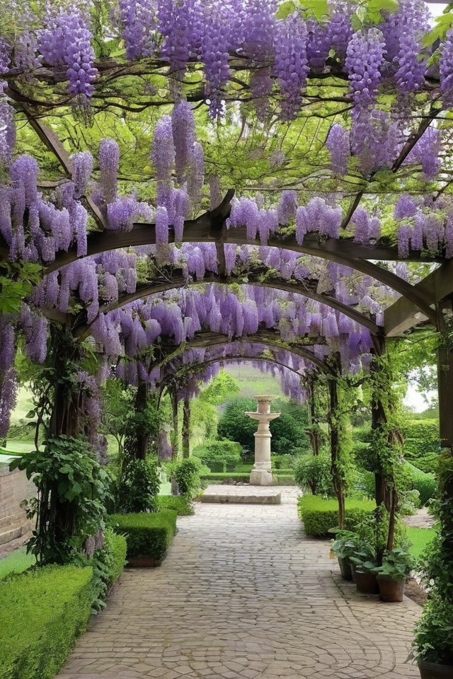 Wisteria climbs rapidly and its cascading purple flowers are simply breathtaking.
