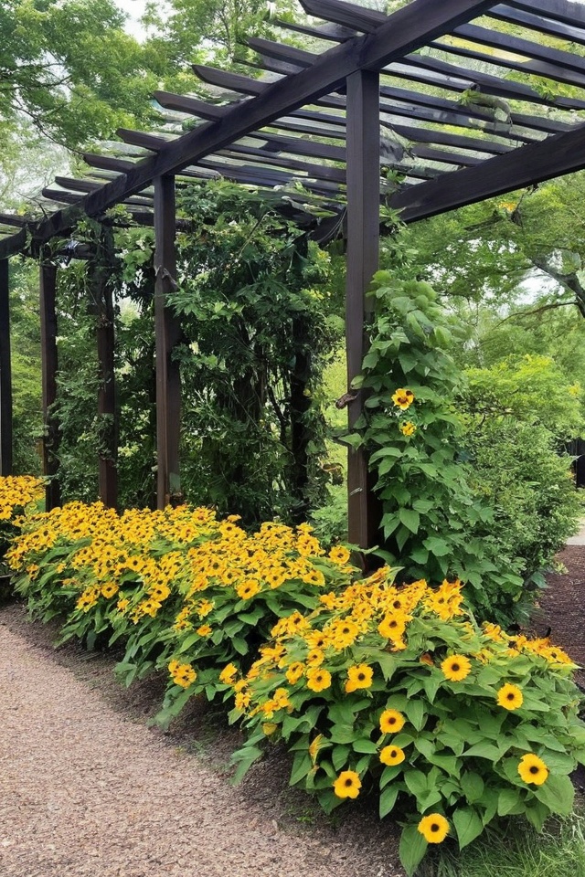 It thrives in warm weather and looks amazing climbing up a trellis.