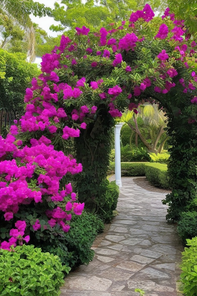Bougainvillea thrives in the heat of Zone 9 and produces brilliant bursts of color.