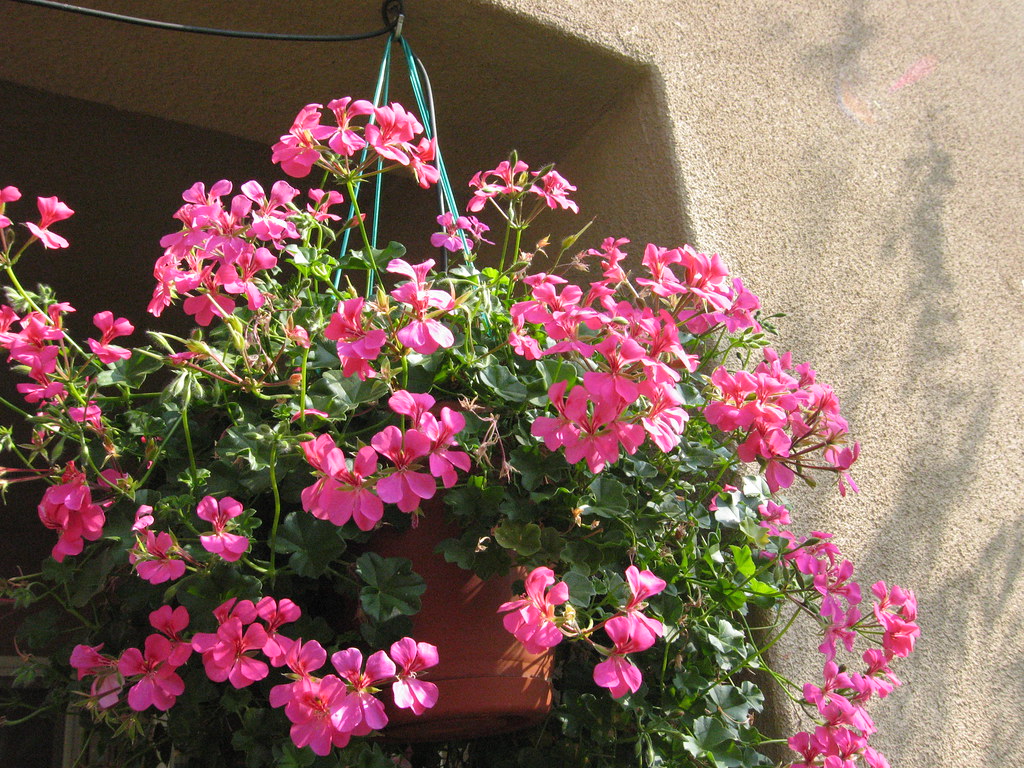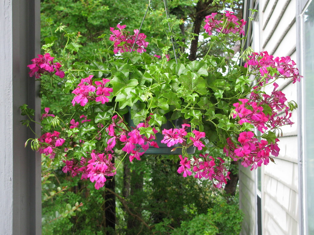 Ivy Geraniums are made for hanging baskets with their trailing vines and bright blooms. They’re hardy and can handle a bit of rough weather too.