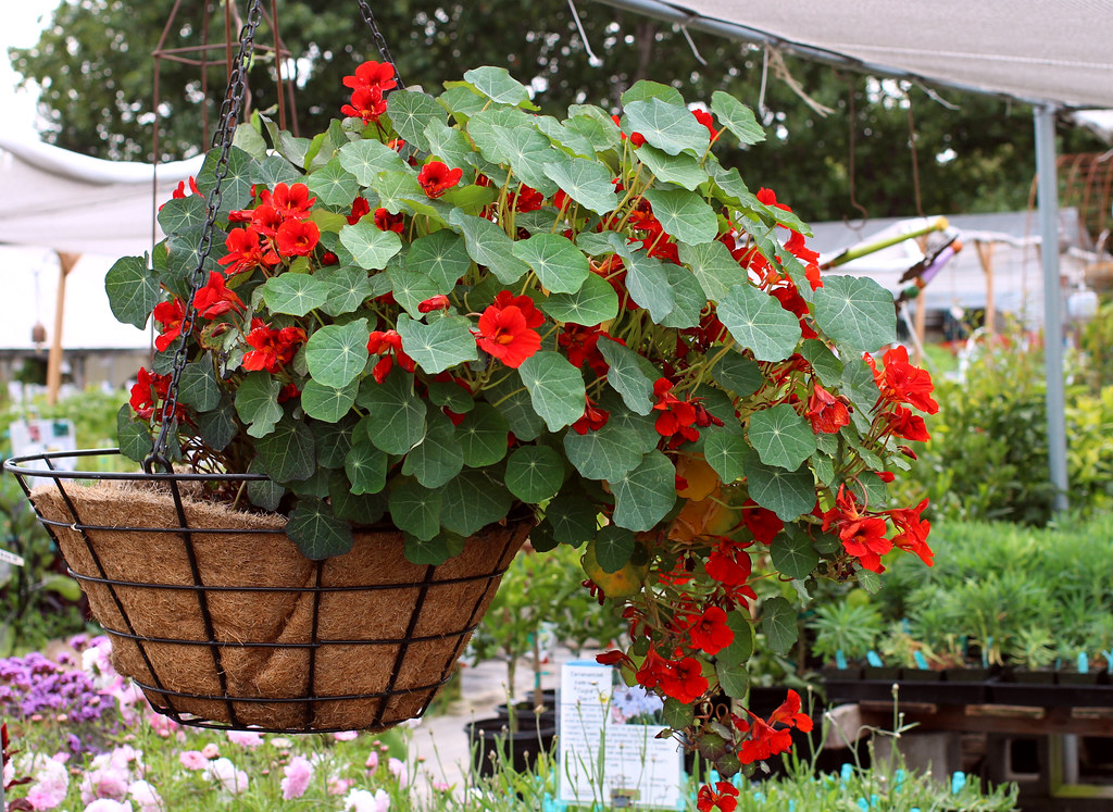Nasturtiums are a delightful addition to hanging baskets with their vibrant, edible flowers. They thrive on neglect and add a splash of cheerful color.