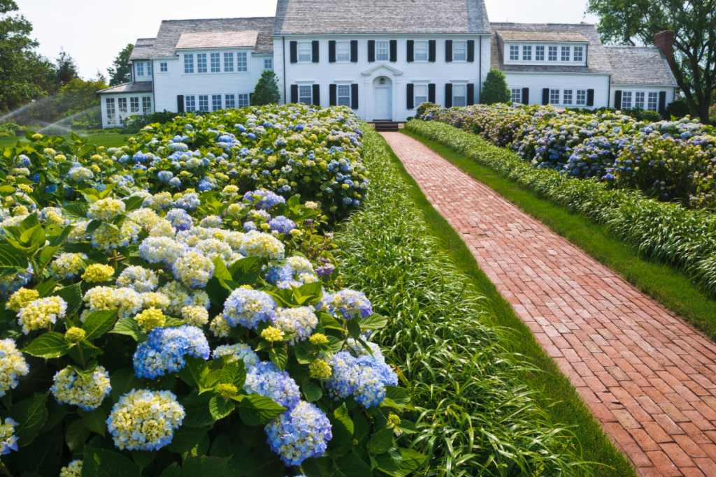 Hydrangeas are colored in a variety of hues, such as blue, pink, white, and purple; the pH of the soil frequently affects these hues. Hardy in zones 3 through 9, these perennial bushes need regular irrigation, especially during dry spells. Although they may survive in some full sun, they usually do better in partial shade. The majority of the relatively simple maintenance consists of trimming spent blooms and making sure the pH and soil moisture levels are right for the best possible color show.