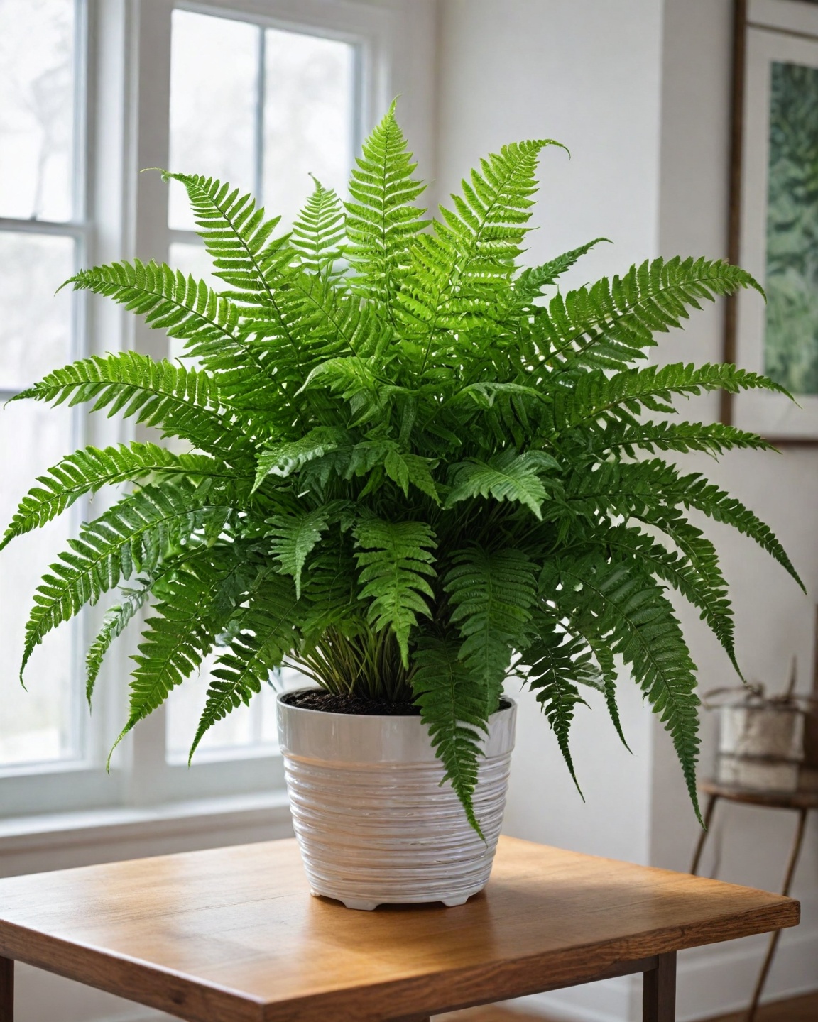 Boston Ferns are awesome for humidifying indoor air and look like mini tropical forests.
