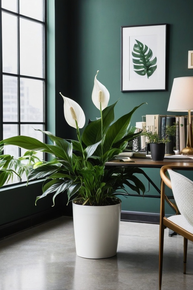 Peace Lilies not only thrive without much sunlight, but they also purify the air.