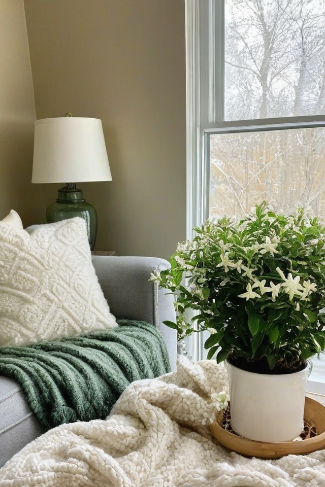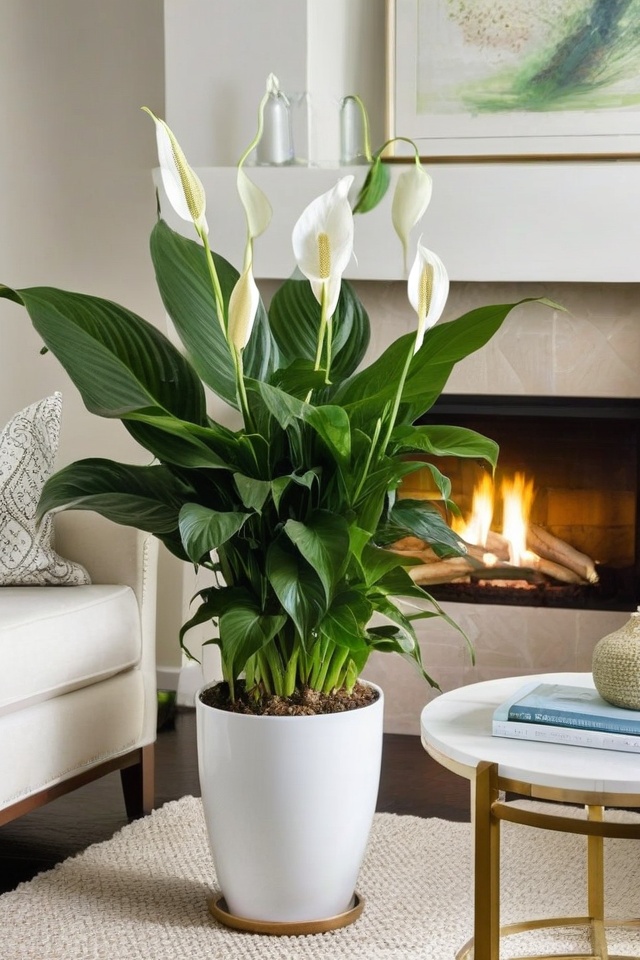 The Peace Lily is perfect for winter because it thrives in low light and still blooms beautifully indoors.