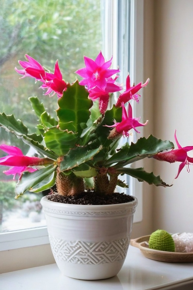 The Christmas Cactus blooms beautifully in winter, bringing a delicate splash of color indoors.