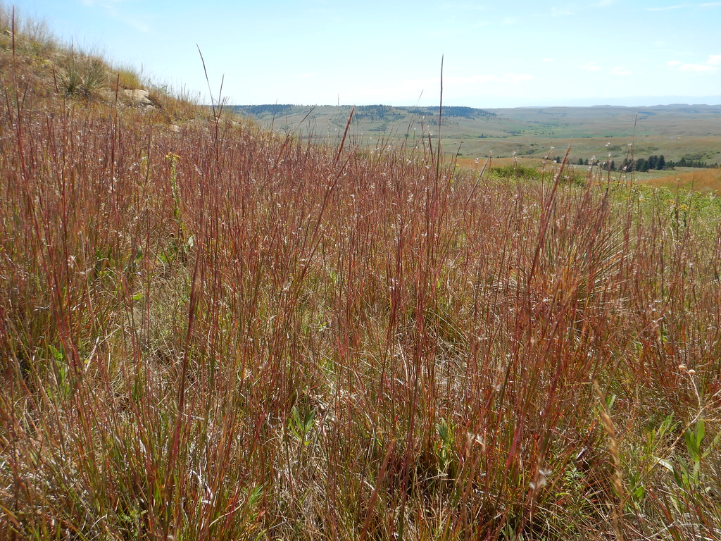 The grass changes color throughout the seasons, starting blue-green in spring, developing reddish-brown hues in late summer, and fading to a copper-orange in fall and winter.