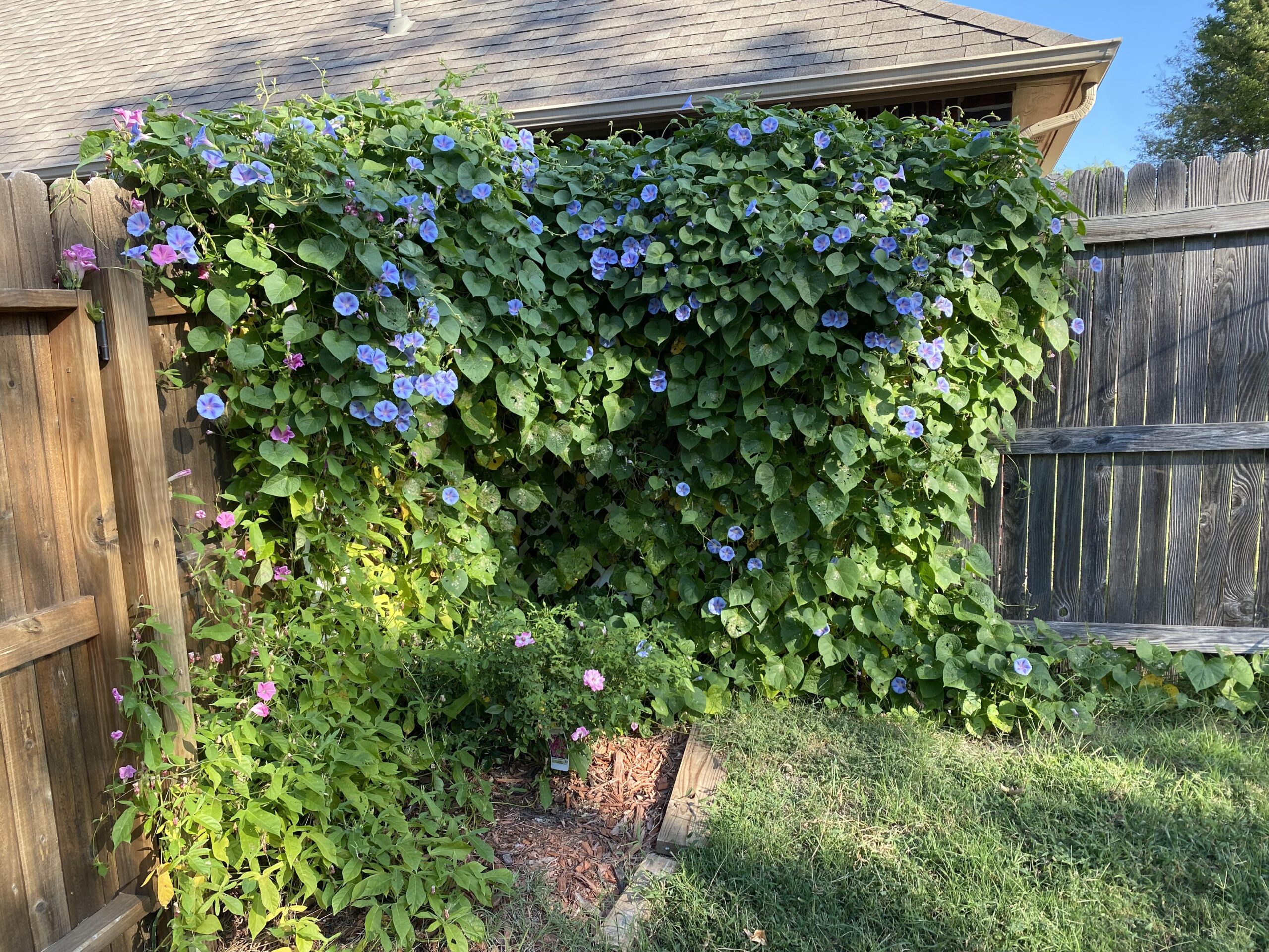 Morning Glory is a fast-growing vine with beautiful, colorful flowers that open in the morning. They’re perfect for adding a splash of color to your fence line.