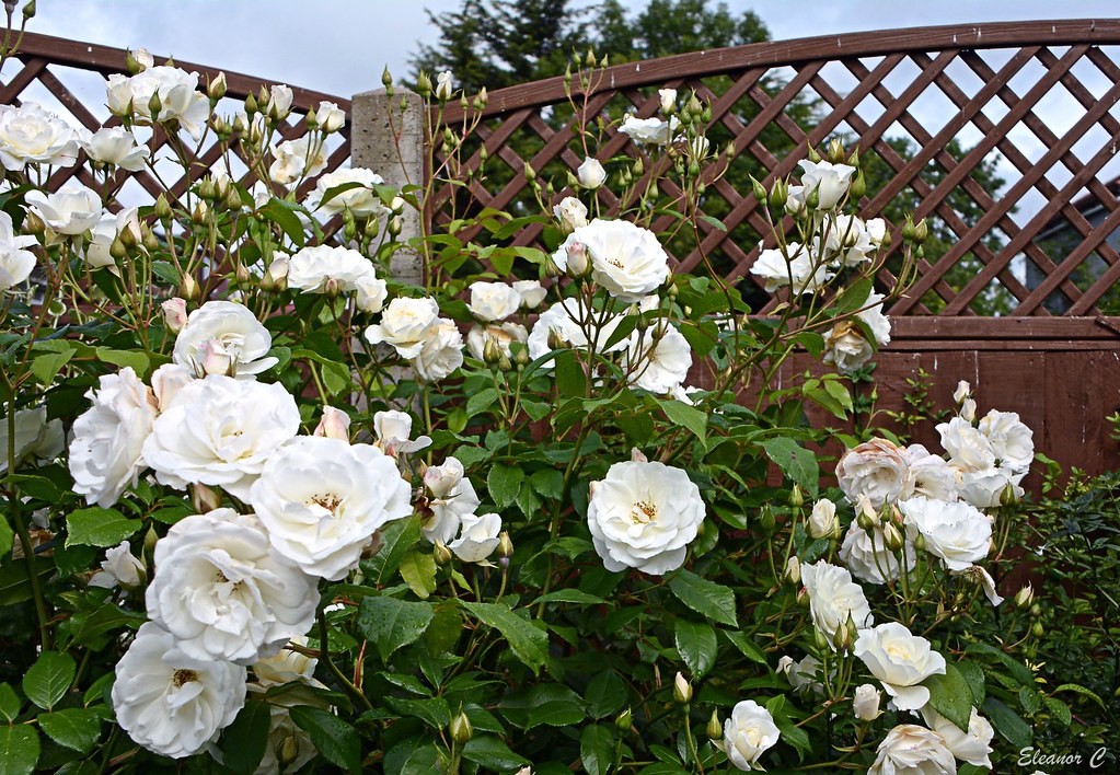 Iceberg Roses are known for their stunning white blooms and easy care.