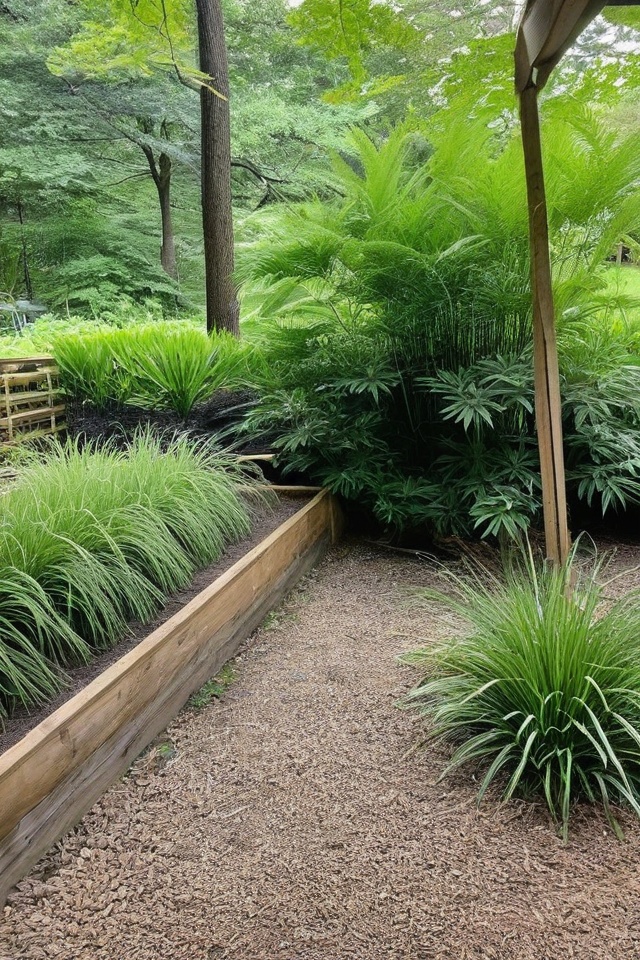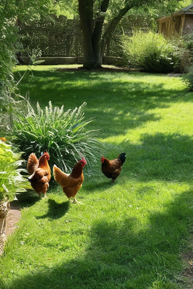 Grasses like sedges thrive in shady environments and offer natural shelter for chickens.