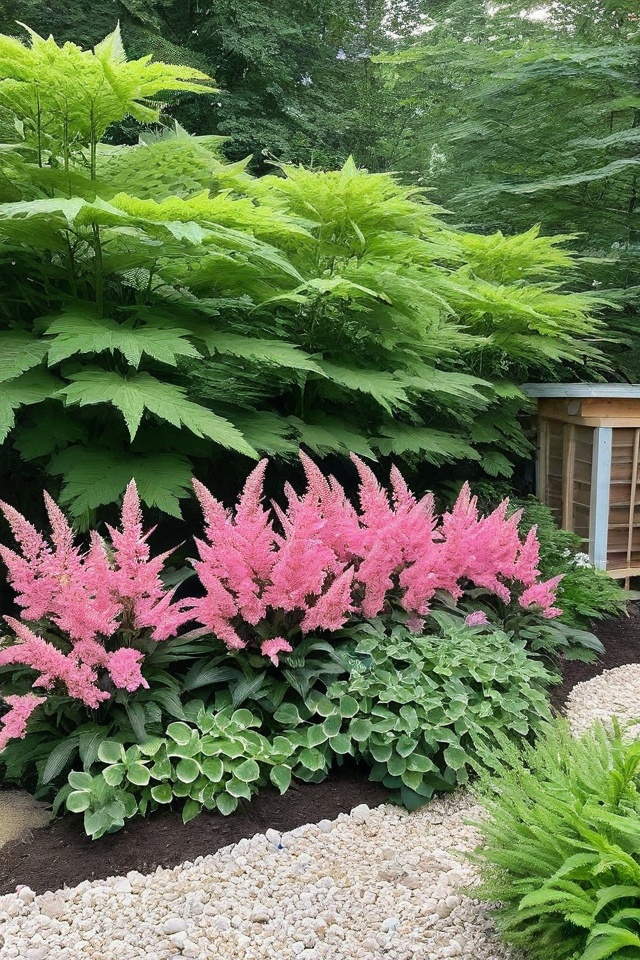 Astilbes are fantastic for adding texture to shaded areas and chickens appreciate their dense foliage.