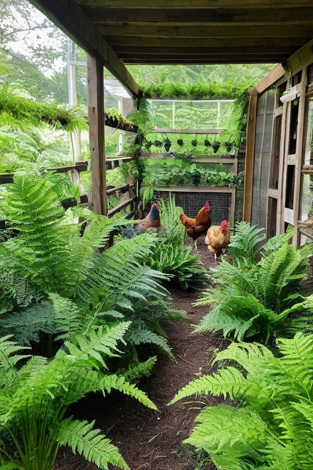 Ferns bring a cool, forest vibe to your chicken run and provide excellent cover from the sun.