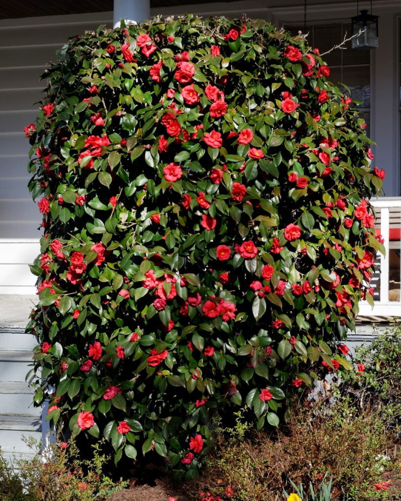 Camellias are shade-loving shrubs that offer beautiful blooms in fall and winter.