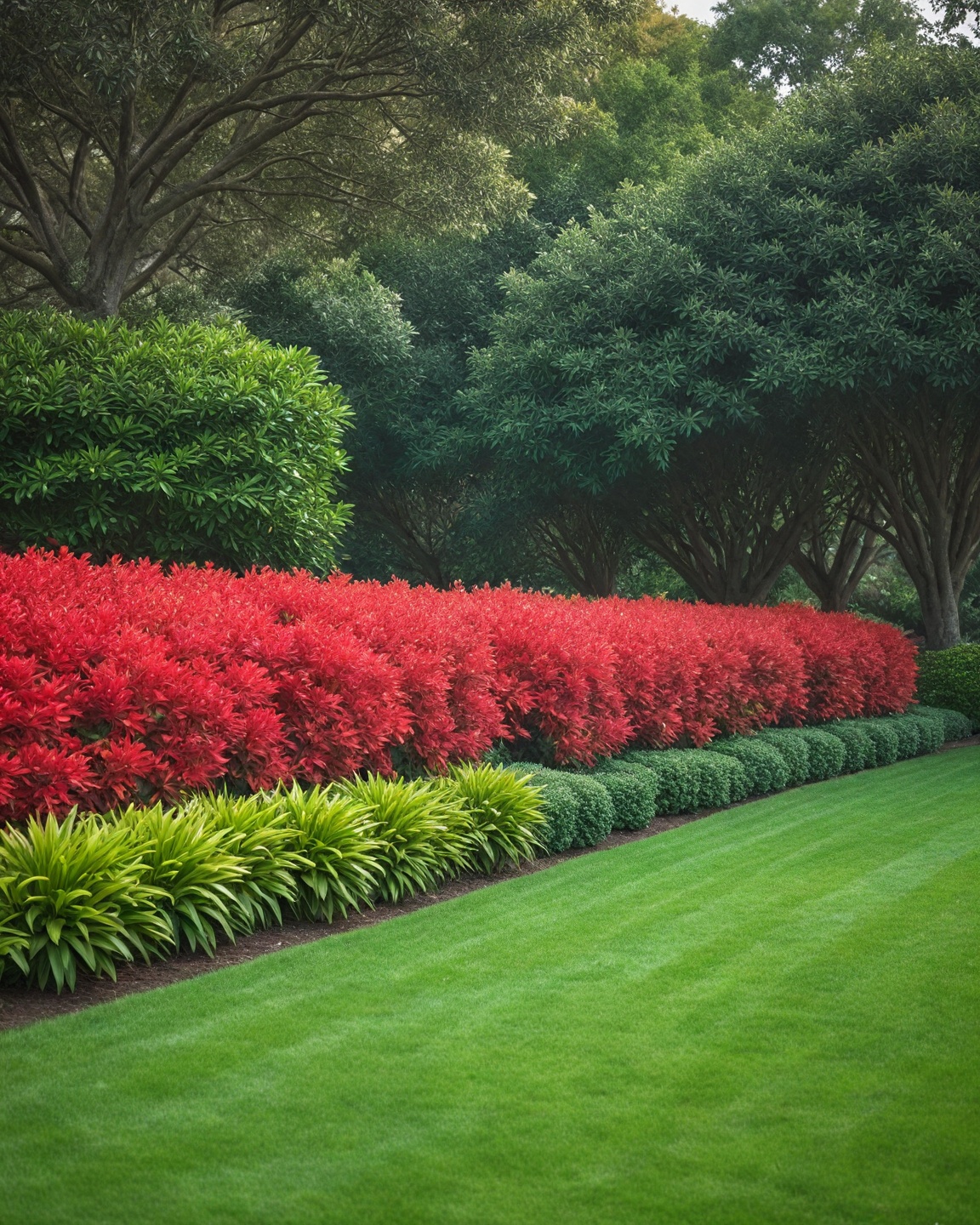 Photinia stands out with its vibrant red new growth that turns green as it matures.