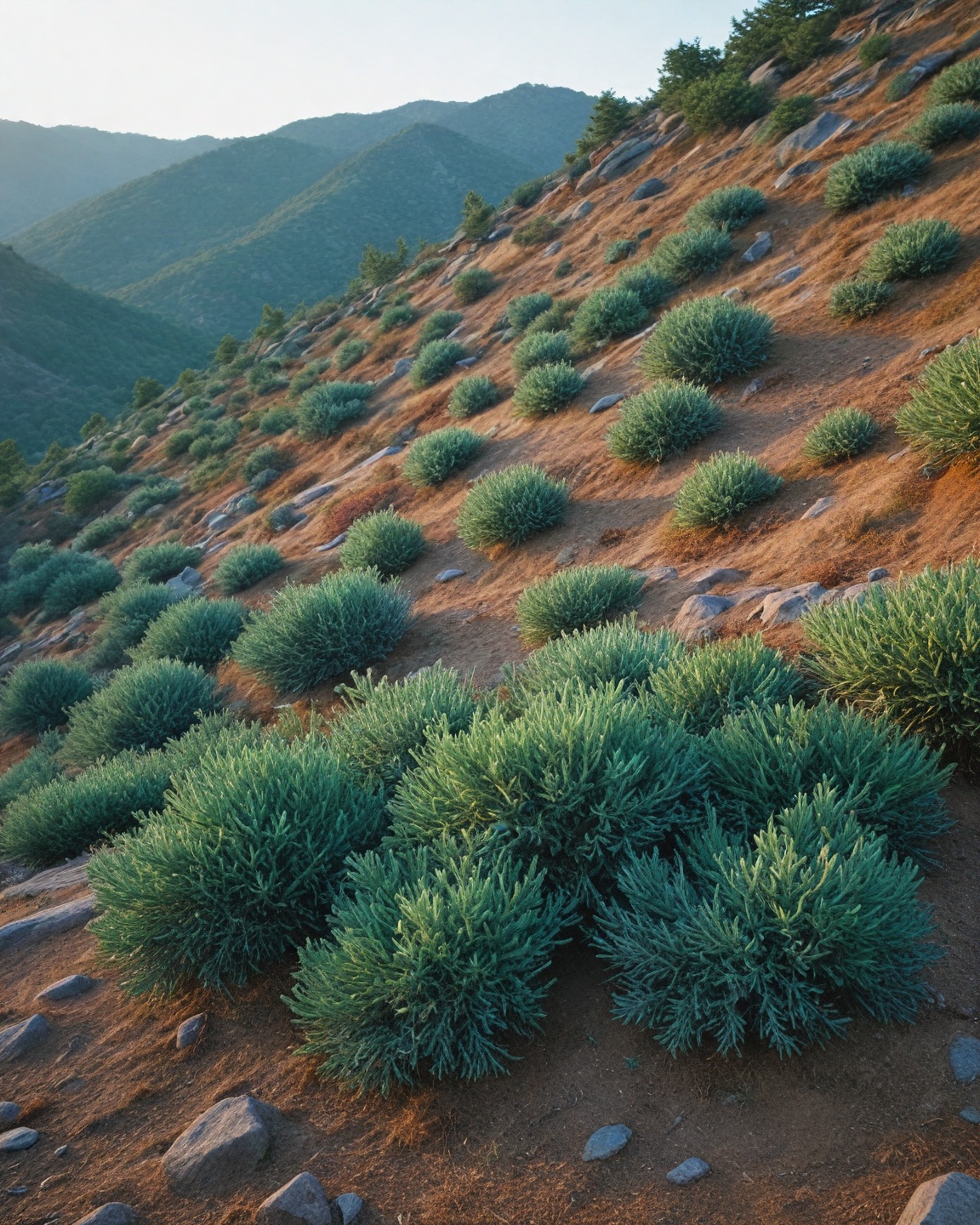 Junipers are evergreen champs that hold up well on hillsides, providing year-round green and minimal maintenance.