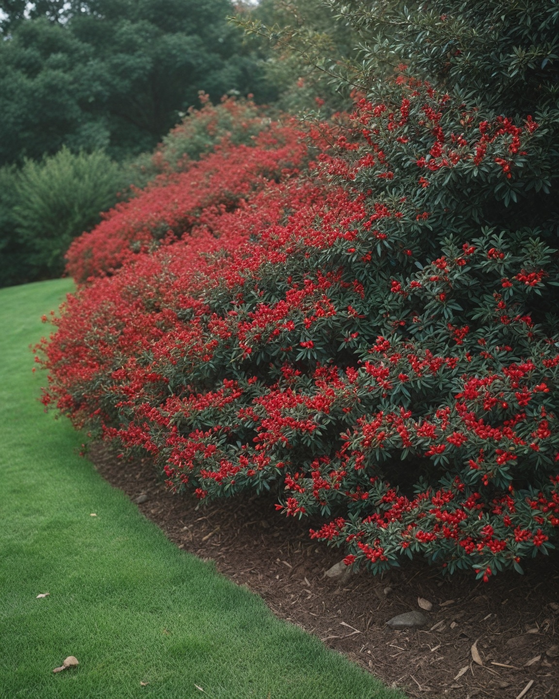 Cotoneaster spreads beautifully across slopes, with red berries adding a splash of color.