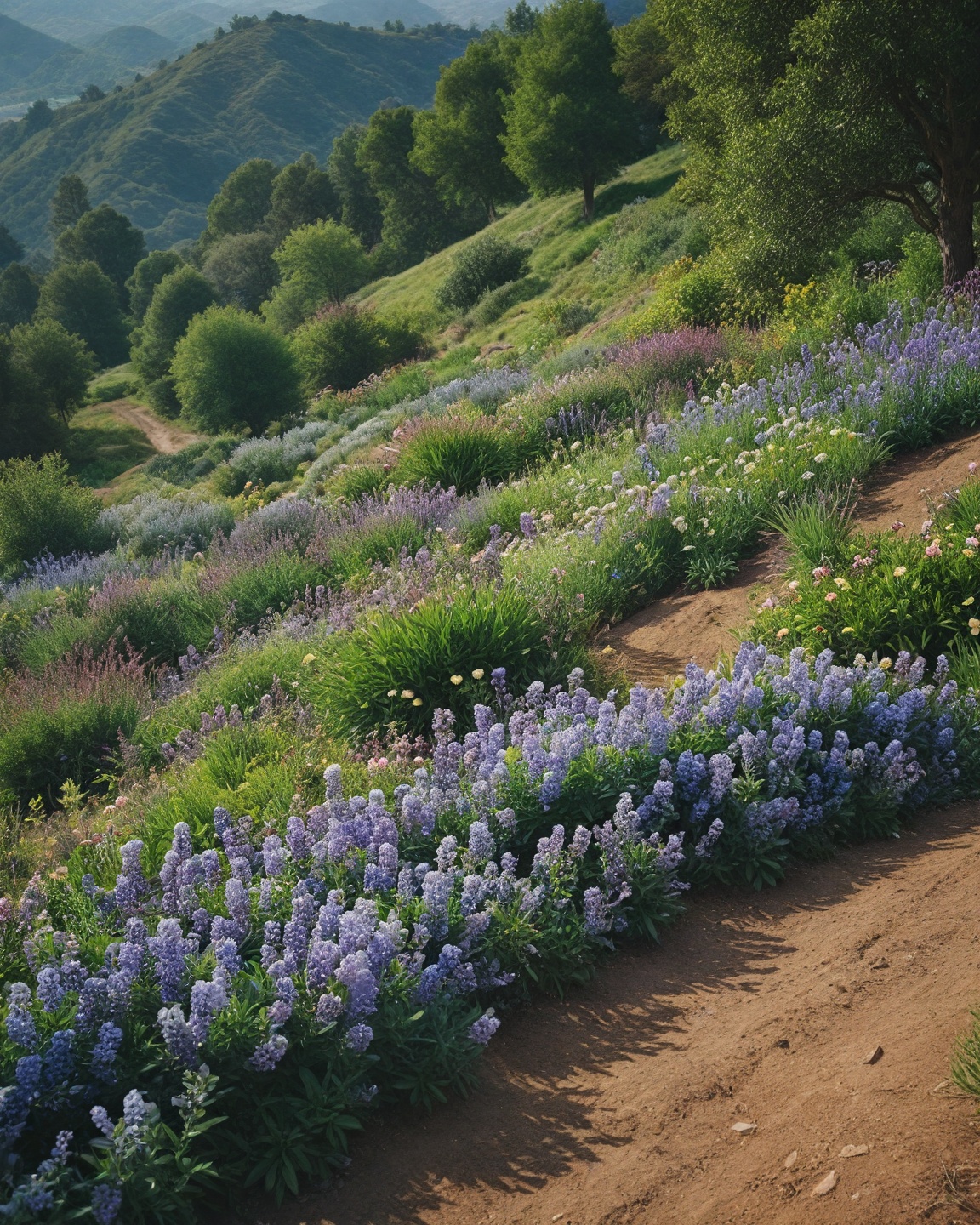 Lavender is perfect for hillsides, offering great erosion control and a lovely, calming scent.