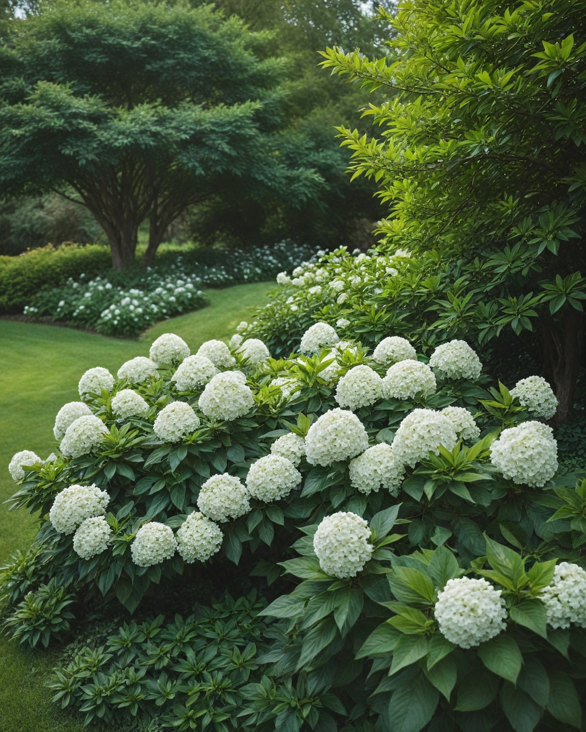 Wild Hydrangea thrives in Kansas with its lovely white blooms and ability to handle the sun.