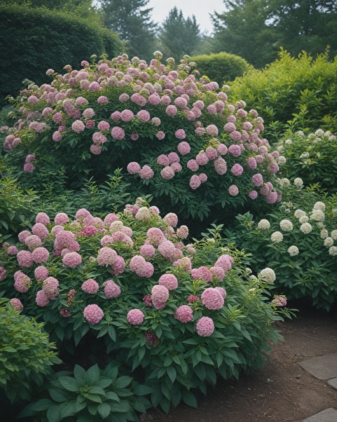 Spirea is a low-maintenance shrub that bursts into fluffy white or pink flowers.