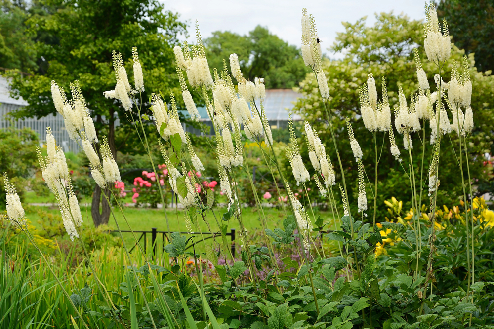 Bugbanes bring natural charm to shaded gardens with their tall, graceful flower spikes that sway gently in the breeze. The dark green, toothed foliage creates a full backdrop, while clusters of white or pink flowers rise up on long stems in late summer and fall.