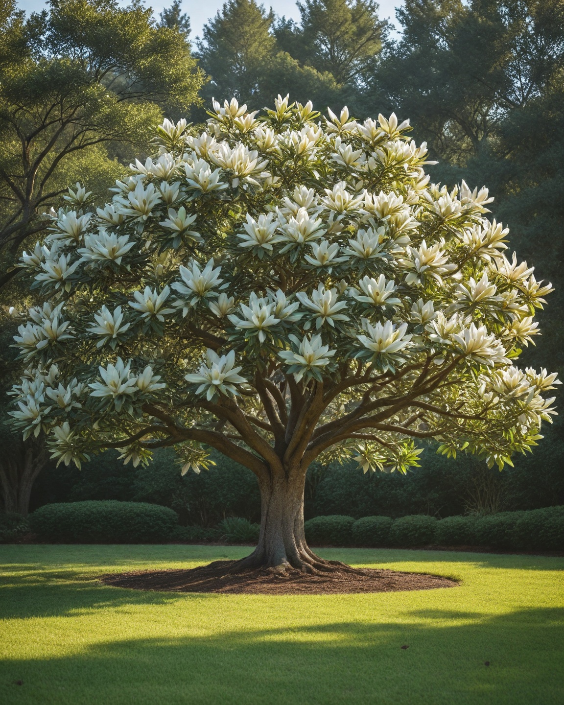 The Southern Magnolia is a classic beauty with its large white flowers and shiny leaves.