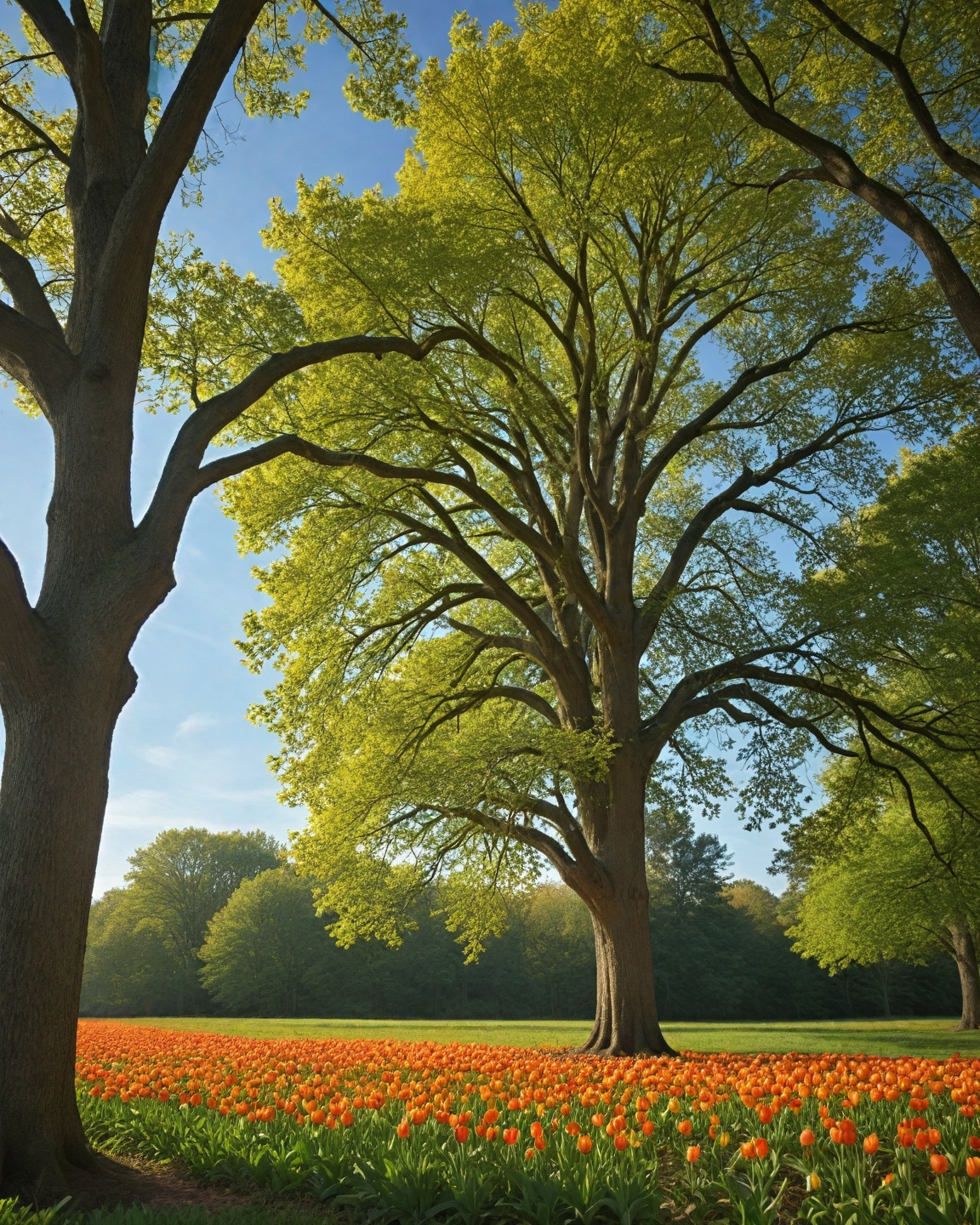 Tulip Poplars grow tall and strong, producing unique tulip-like flowers.