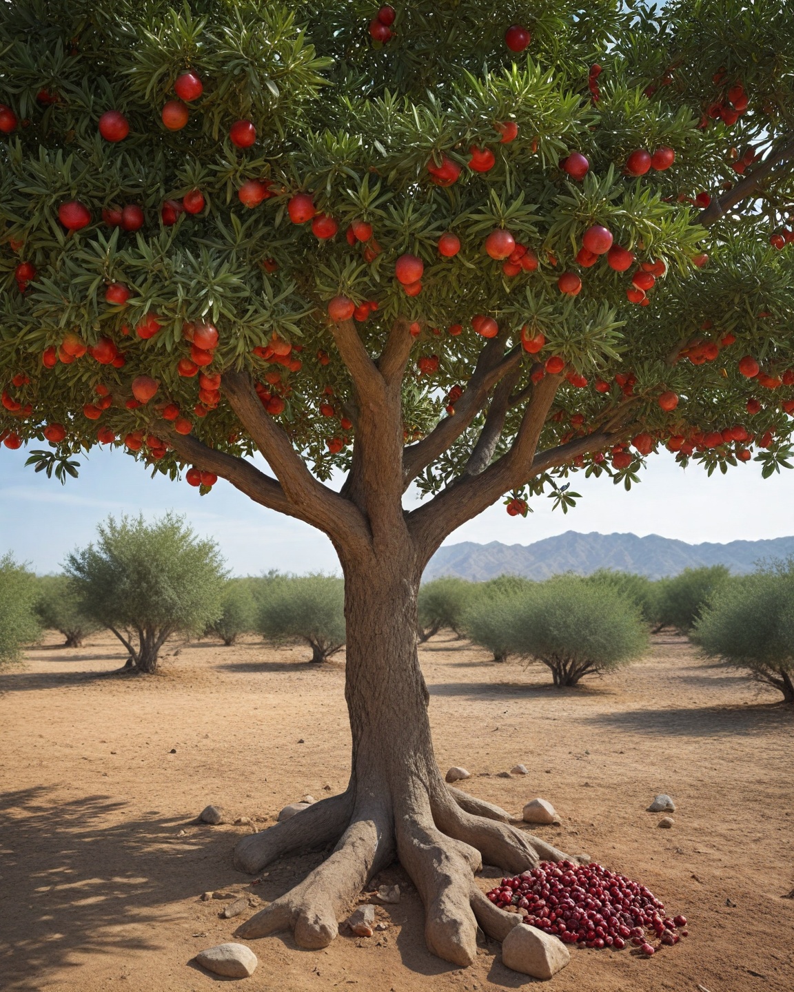 Pomegranate Trees thrive in the desert and produce yummy, juicy fruits.
