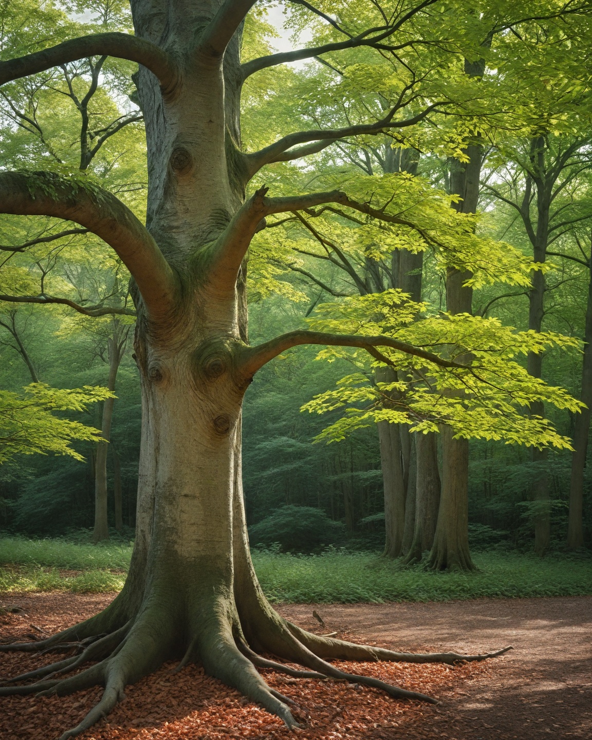 The American Beech has beautiful, smooth bark and its leaves turn a crisp, golden bronze in the fall.