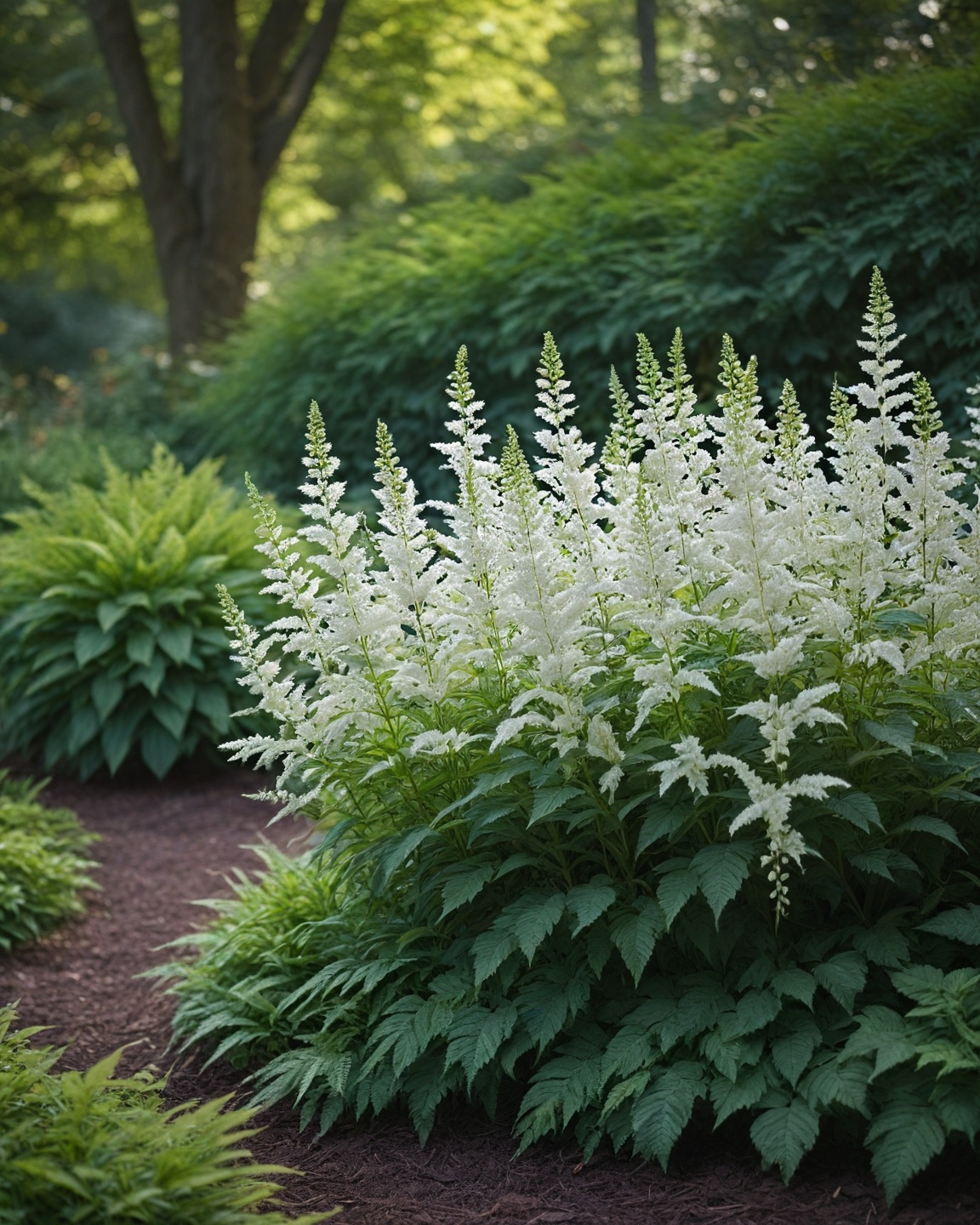 Astilbe ‘Bridal Veil’ brings a soft, romantic touch to your garden with its elegant white flowers.