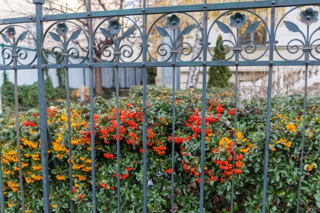 Pyracantha, also known as firethorn, are evergreen shrubs that brighten up the fall with vibrant orange berries. These shrubs are versatile and can be used either as standalone bushes or integrated into hedges.