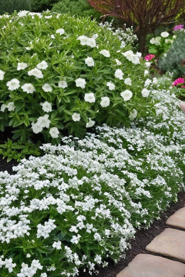 Snow-in-Summer offers a carpet of silver leaves and white flowers in late spring.