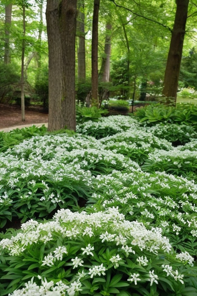 Sweet Woodruff forms a dense mat of greenery with tiny white flowers and has a sweet scent that deer find unappealing.