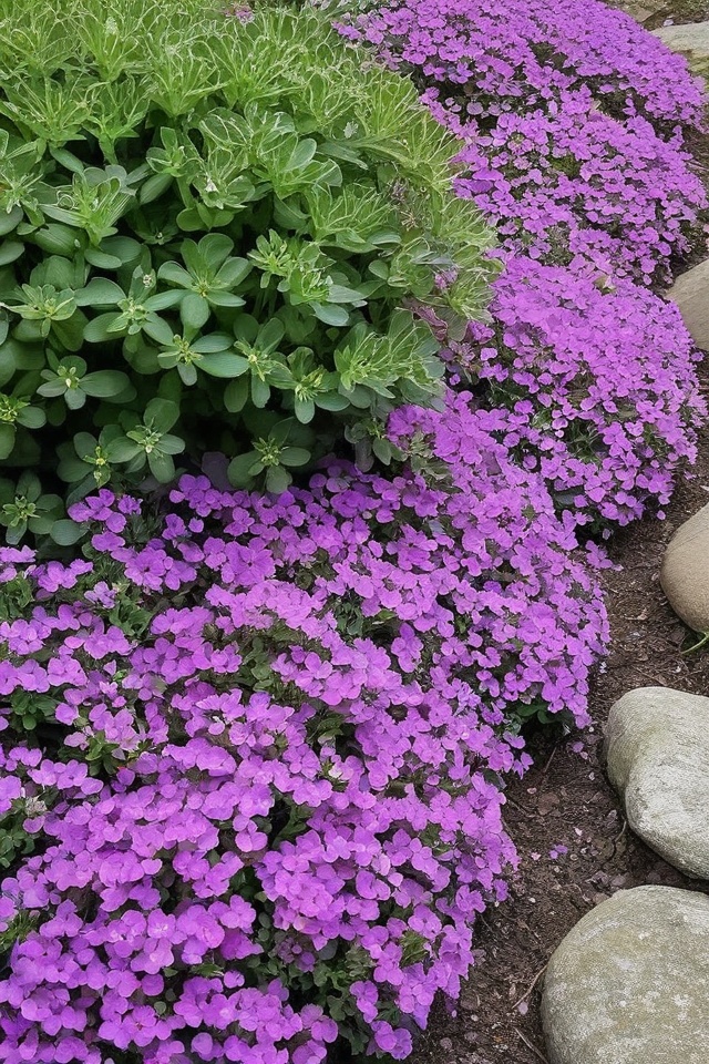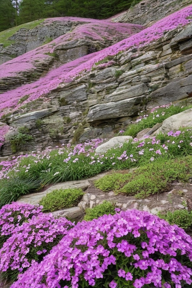 Creeping Phlox forms a lovely floral mat over rocky surfaces with its colorful blooms.