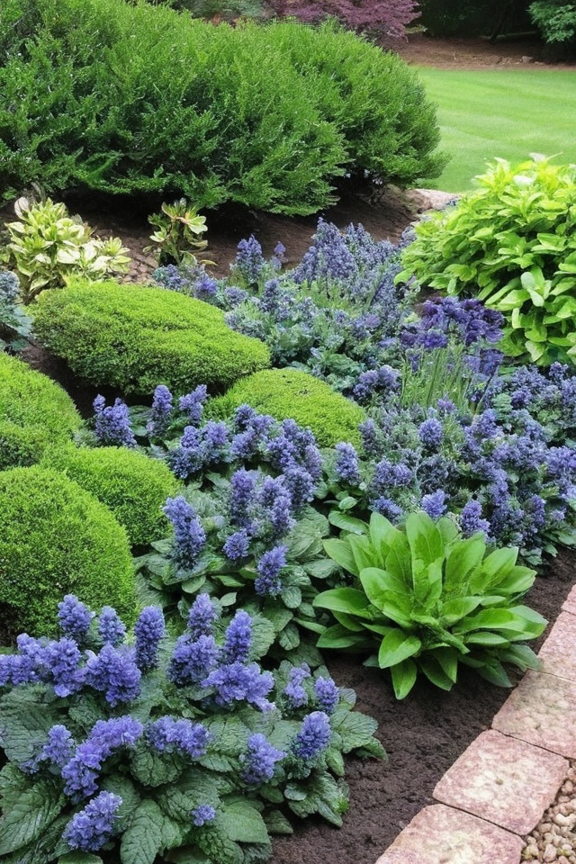 Ajuga, also known as bugleweed, produces striking blue flowers and quickly covers rocky ground.