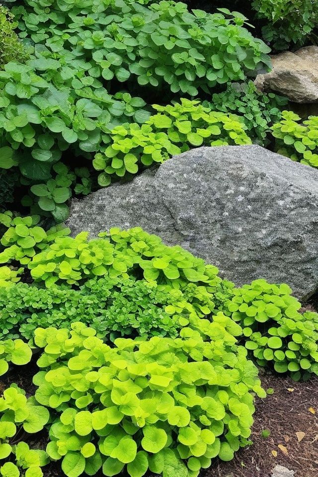 Creeping Jenny loves rocky terrain and spreads out like a golden carpet.