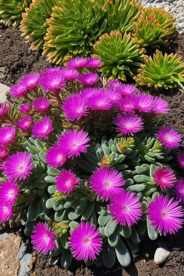 Ice Plant enjoys rocky conditions and rewards you with vibrant, daisy-like blooms.