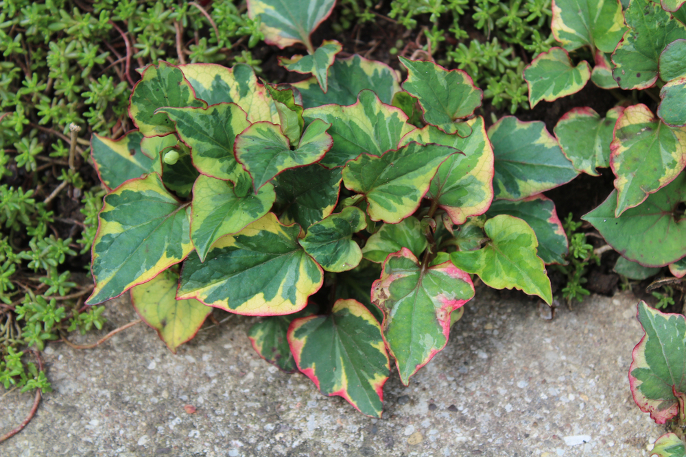 A hardy ground cover perennial known for its heart-shaped leaves and ability to spread quickly in moist areas. The foliage comes in green with cream variegation or splashes of red and copper, making it an interesting addition to shady spots.