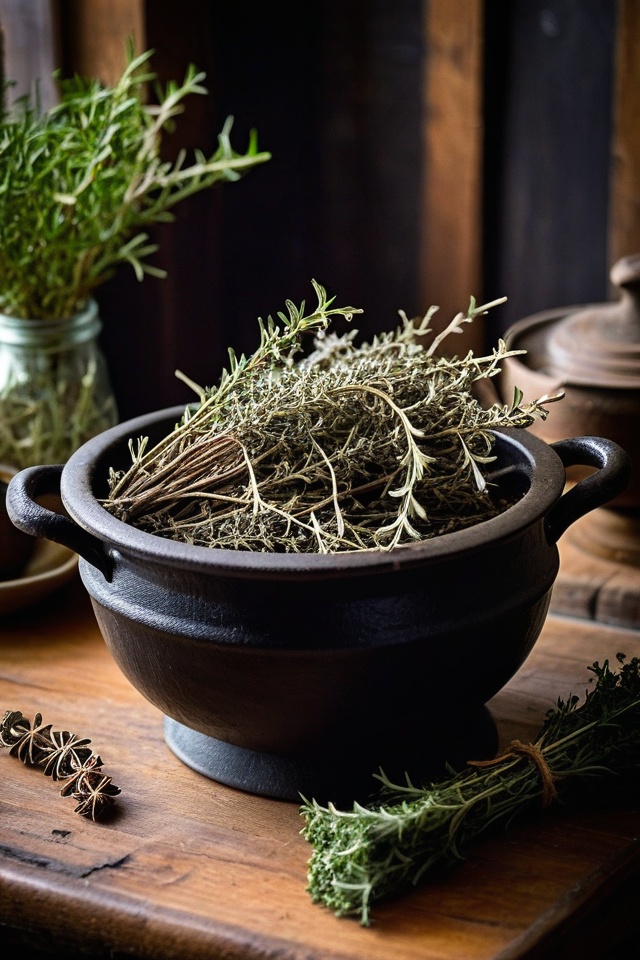 Thyme is not only delicious in dishes but is also known for its protective qualities in folklore.