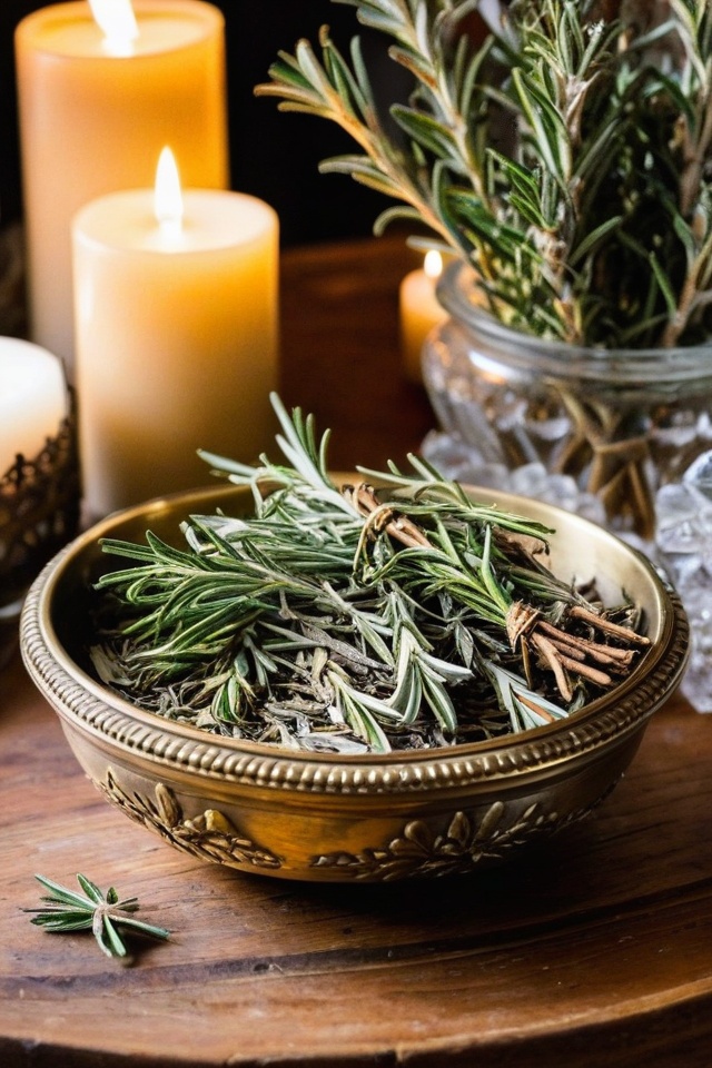 Burning rosemary can help clear out negative vibes and keep your energy flowing strong!