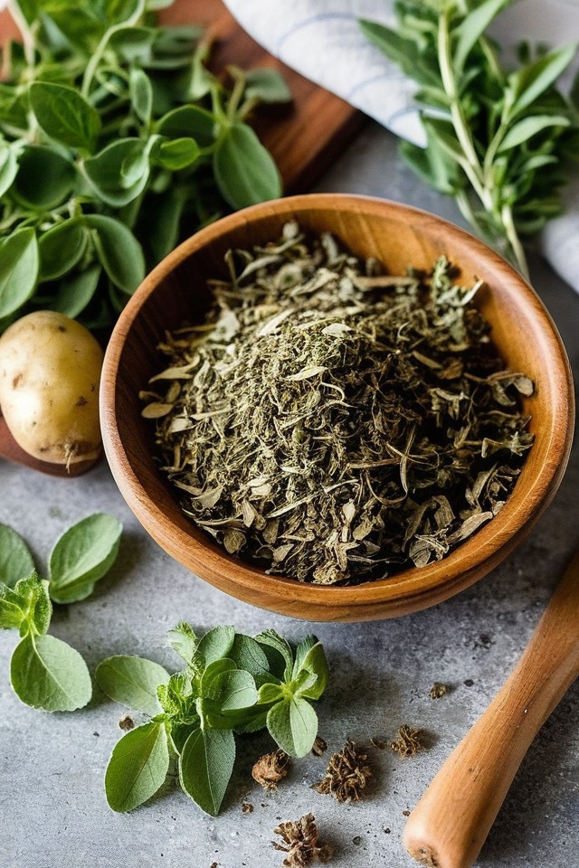 Oregano is bold and pairs well with potatoes, especially in Mediterranean dishes.