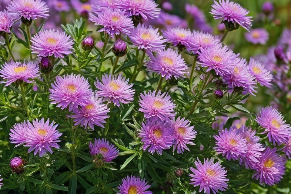 Asters bring a burst of color that pairs beautifully with lavender. These daisy-like flowers bloom in late summer and fall, right when your lavender might be winding down.
