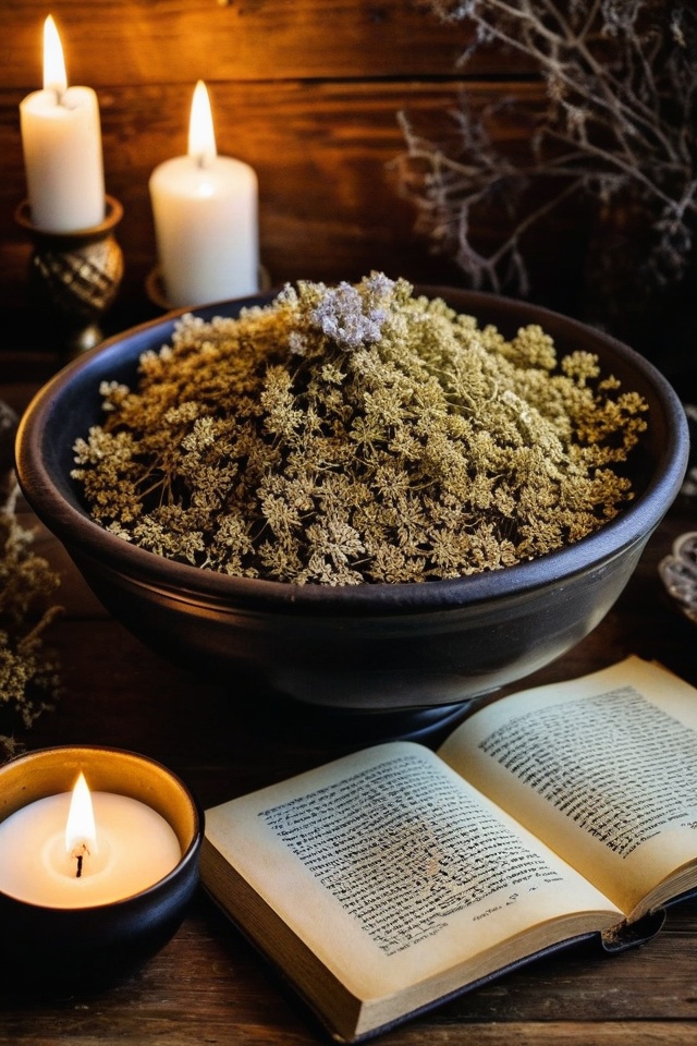Sprinkling dried yarrow around can also invite protection during your magical workings!