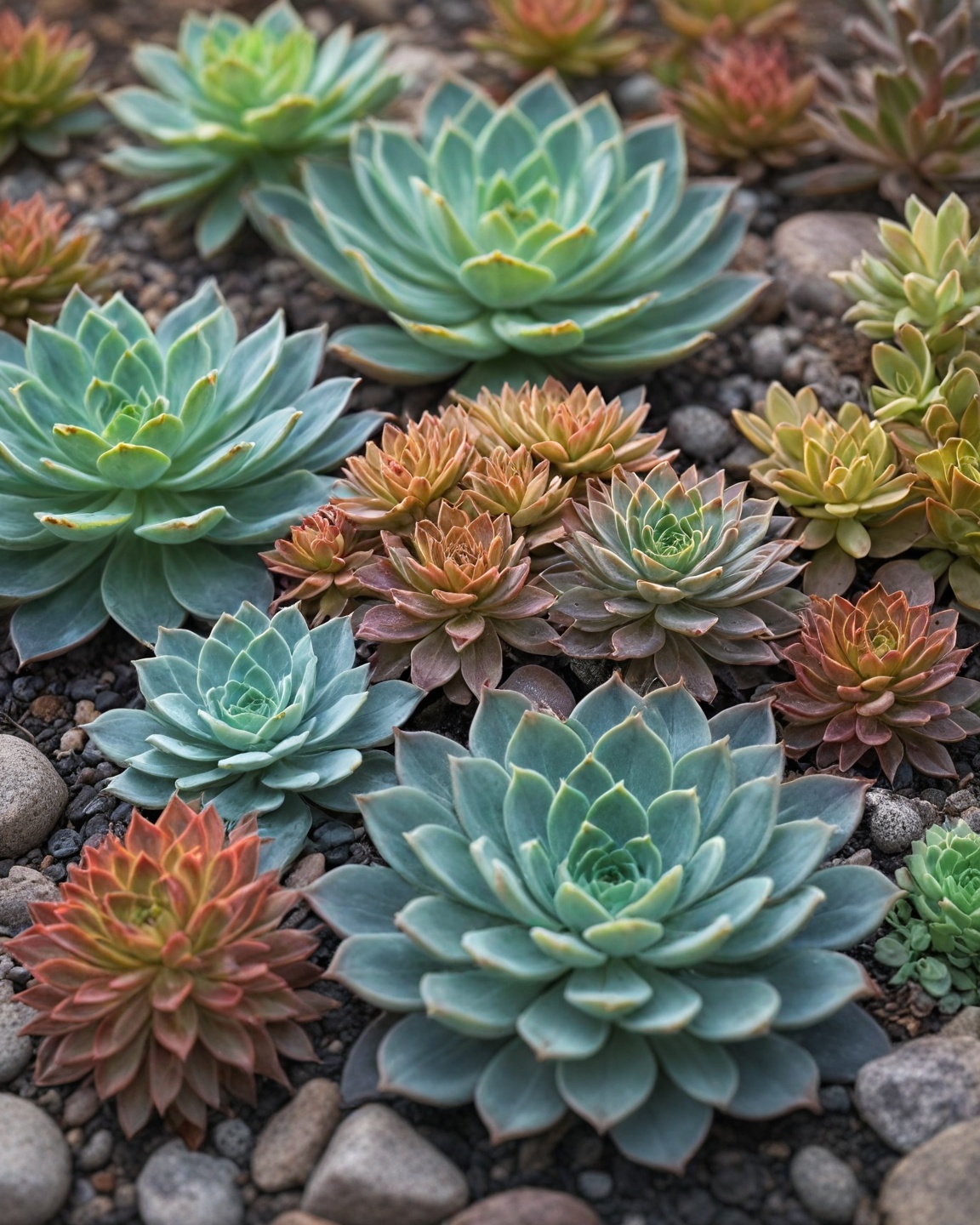 Echeverias come in all sorts of beautiful colors and forms, making them a popular choice for outdoor gardens.