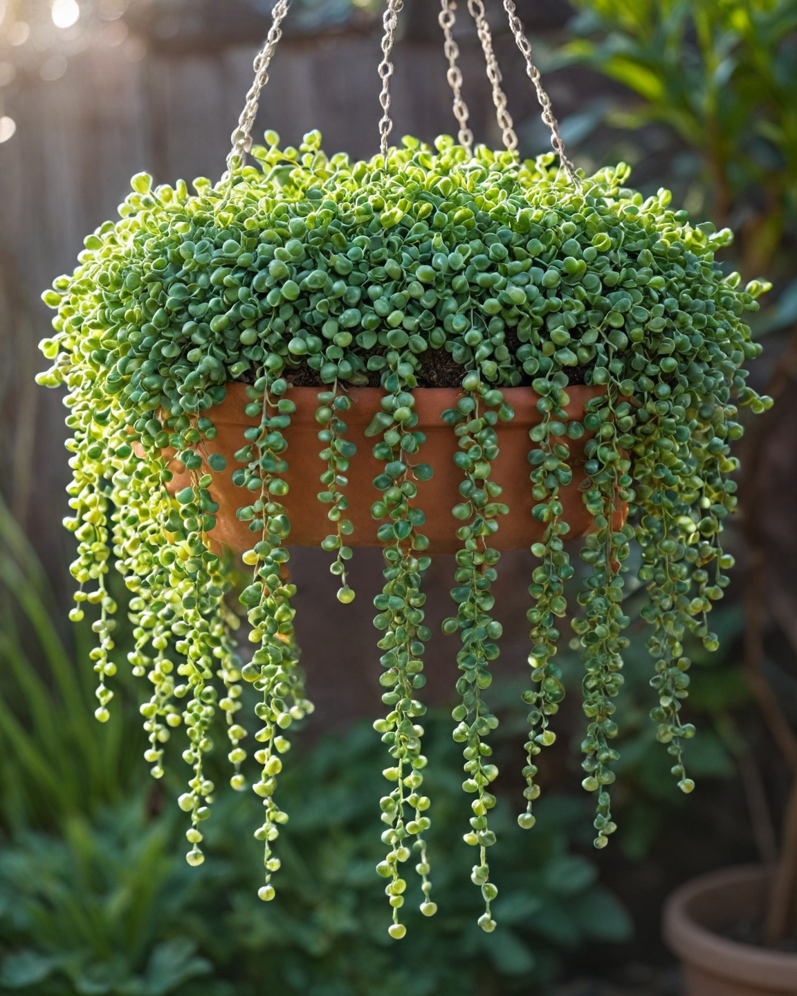 String of Pearls is a total showstopper with its bead-like leaves draping beautifully from hanging baskets.